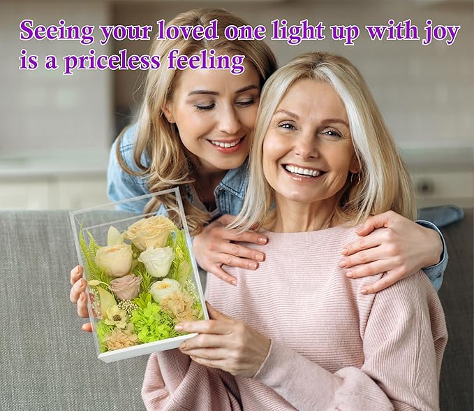 - ♥A Happy Smile Can Be Triggered By Beautiful Flowers with Love♥: Sending your special someone a unique flower gift is a genuine expression of your love and appreciation. Whether it's for a romantic partner, a beloved family member, a treasured friend, or someone dear to your heart, gifting flowers can brighten her day and bring a smile to her face. Seeing your loved one light up with happiness is a priceless feeling. These flowers have a long lifespan, which can serve as a lasting reminder of this happy moment.