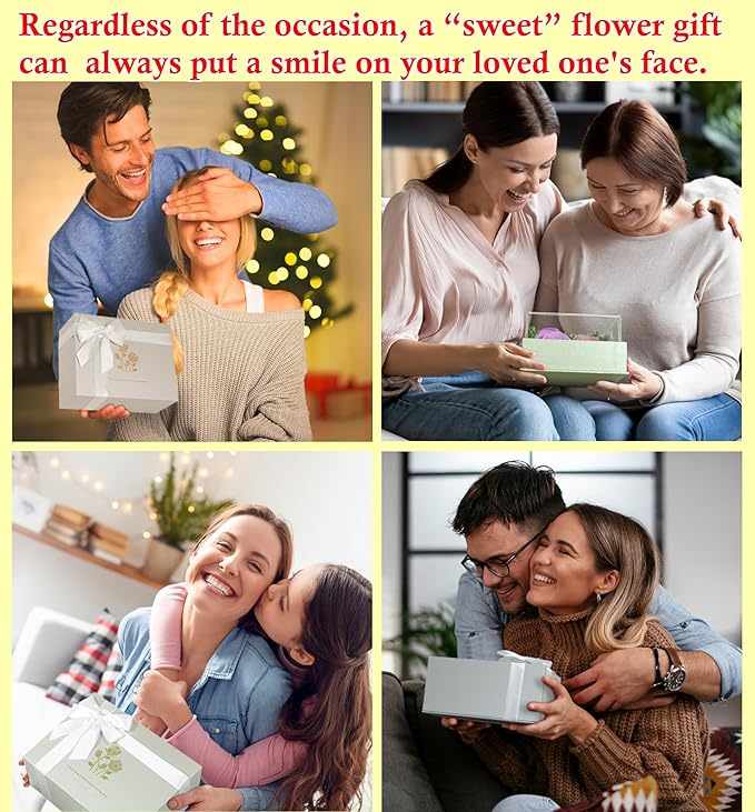 - ♥A Happy Smile Can Be Triggered By Beautiful Flowers with Love♥: Sending your special someone a unique flower gift is a genuine expression of your love and appreciation. Whether it's for a romantic partner, a beloved family member, a treasured friend, or someone dear to your heart, gifting flowers can brighten her day and bring a smile to her face. Seeing your loved one light up with happiness is a priceless feeling. These flowers have a long lifespan, which can serve as a lasting reminder of this happy moment.