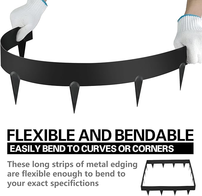 - FLEXIBLE AND EASY TO INSTALL: With 3.2" sharp saw teeth, this bendable hammer-in steel edging is easy to bend and install, (Note:Please wear gloves for installation); It can also be easily hammered back down; You can easily pull the edging up and reshape it to match a new shape