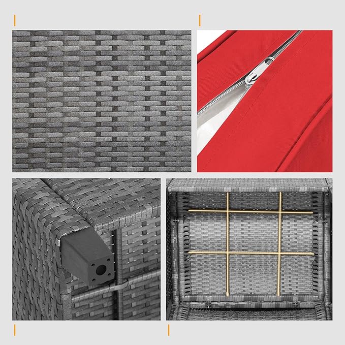 - 【Excellent Stability & Durability】 This 3 pieces patio furniture set is made of sun-resistant mix gray PE rattan for longer outdoor service. Besides, the heavy-duty metal structure with rustproof surface features excellent sturdiness and durability. And the stable foot pad ensures extra support.