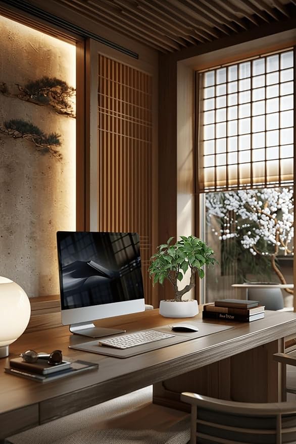- Small Bonsai Tree - The overall height of the mini bonsai tree is 13", the roots are covered in nature stone to simulate the real soil environment. Built-in cement bed to add weight to the pot so your mini bonsai tree stand steadily. This fake desk plant is perfectly sized to fit in any space. Its compact and lightweight design makes it easy to move and reposition, complementing a variety of indoor settings while adding a touch of refined elegance to your room decor
