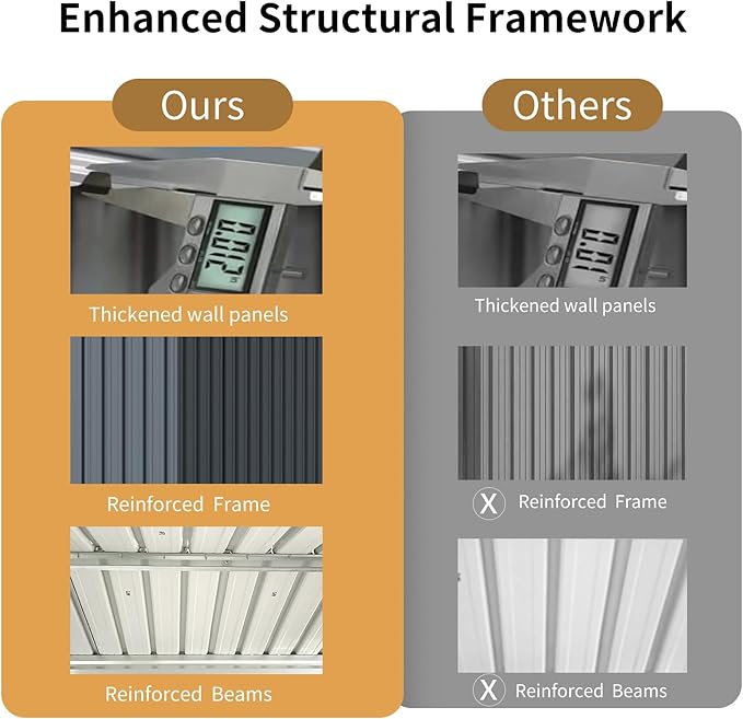 - 【Upgraded Frame Structure】The storage shed features an improved frame structure, making installation easier and enhancing overall stability. It's perfect for keeping your backyard organized as an outdoor tool shed. Plus, the protective film prevents scratches.