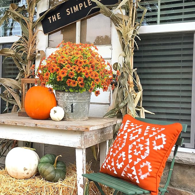 10 Bundles Artificial Fall Flowers Outdoor UV Resistant Fake Flowers(Orange)