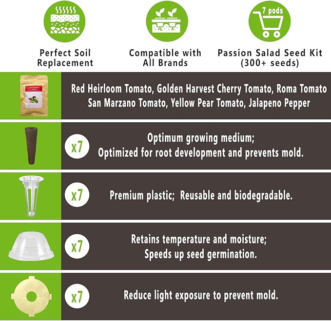 - 【Great Alternative to Big Brands】Our seed pod kits are perfectly compatible with Aerogarden, idoo, Ahopegarden, MUFGA, and most other hydroponics growing systems. Integrate convenience and reliability with economical viability.