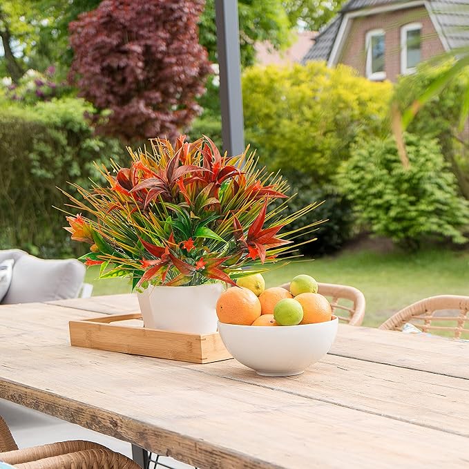 - Fall Outdoor Flowers: They have a very natural and realistic appearance to bring you lush whether indoors or outdoors. Artificial plants outdoor can be kept fresh and beautiful year after year