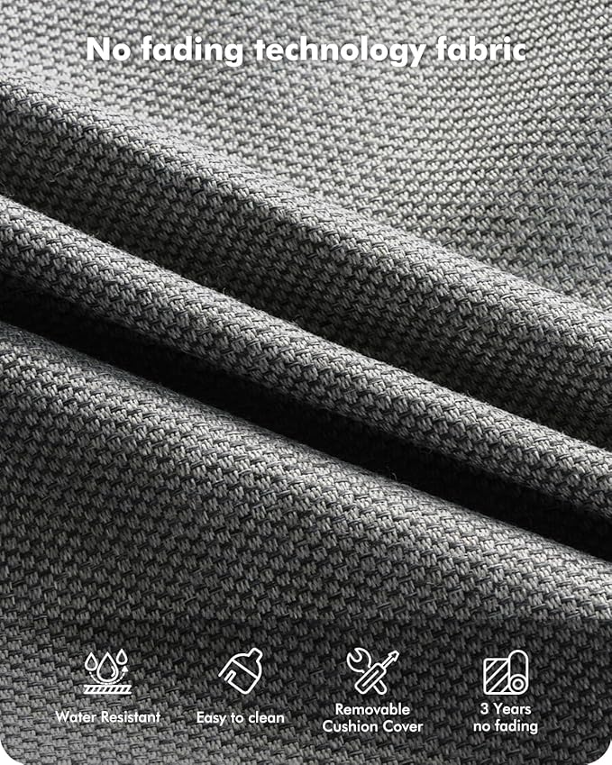 - Non-Fading Fabric:3-Year-Non-Fading,made with high-density foam that is soft and supportive, and covered with a breathable fabric that is easy to clean and maintain. The cushion covers are also water resistance, stain-resistant, ensuring they remain in excellent condition in all weather conditions