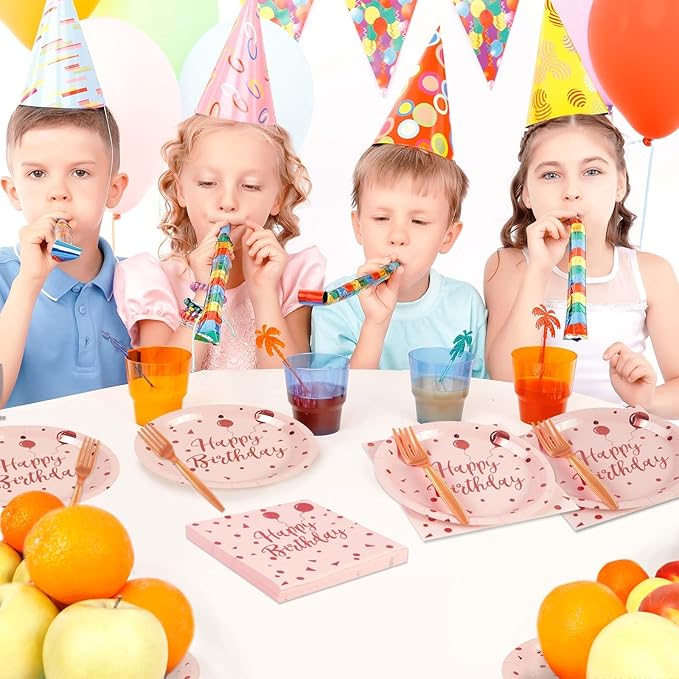 - 【BIRTHDAY PARTY PAPER TABLEWARE SET】:Our rose and gold Plate Party Set includes 25 x 7 Inch paper dinner plates, 25 x 6.5 Inch napkins, 25 sets of gold forks. Great value for money, perfect to use for birthday parties!