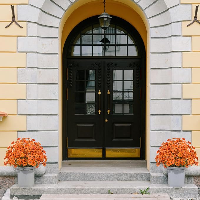 15 Bundles Artificial Flowers UV Resistant Outdoor Plants No Fade Faux Plastic Shrubs Fake Silk Flowers Window Box Garden Porch Home Decoration(Light Autumn Orange)