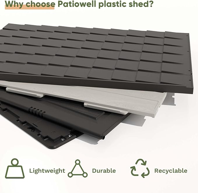 - Recyclable And Durable Material: Made from recyclable materials, this storage shed is designed to be both lightweight and durable. Beige wall and gray roof are more beautiful and fashionable.
