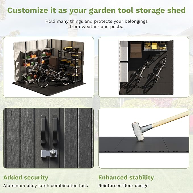 - Oversized Storage Space: Our shed is designed in 91.9"D x 91.3"W x 94.5"H, provides ample storage for a wide range of items, from gardening tools and equipment to bicycles, sports gear and outdoor furniture. It will fulfill your most outdoor storage needs and is a great addition to your patio.
