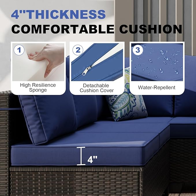 - 【Plush Thick Cushions for Comfort】Features soft, quick-drying cushions filled with high-density foam. Designed for all-day comfort, they provide excellent support whether you’re lounging or entertaining guests