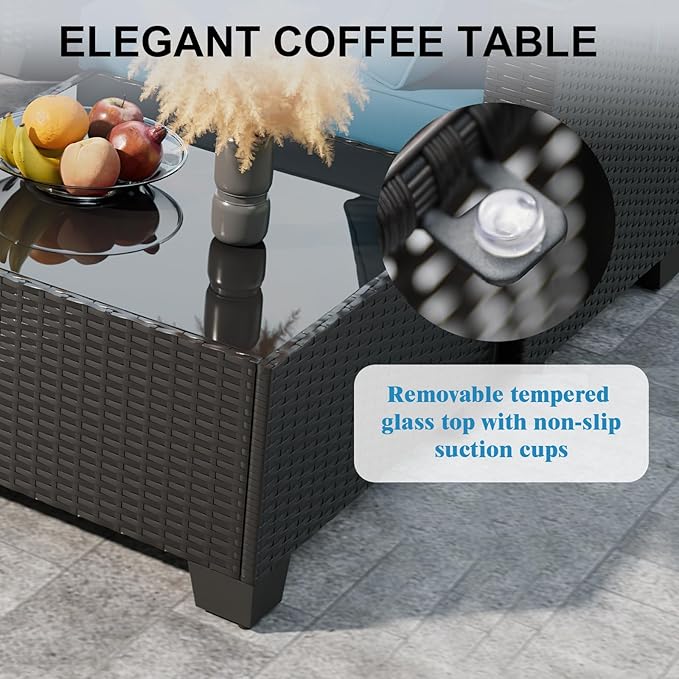 - 【Easy Assembly & Maintenance】Most parts come assembled or pre-packaged for straightforward setup. The smooth glass fire pit table and easy-to-clean cushions let you spend more time enjoying your outdoor oasis