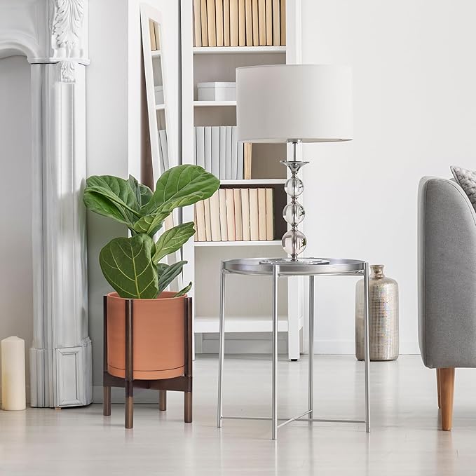 - A Complete Set: Mid-century terracotta planter, combined with a sculptural, solid wood stand that match perfectly together and looks great in anywhere.