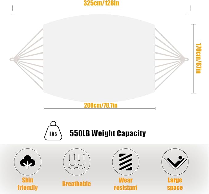 - ✬Great to be Placed in Outdoor and Indoor: The hammock can be used outside in the backyard, patio, deck, balcony, and front porch. Considering its compact design, hanging it in your room or taking it out for your camp trip is also available.