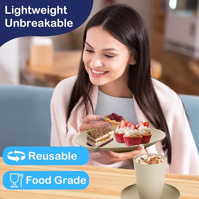 - LIGHTWEIGHT & PRACTICAL: This dishes set are sturdy and practical, and it is safe even if it is accidentally dropped. Its lightweight design allows children to easily enjoy the fun of dining without worries. Whether it is adults or the elderly, this plastic dinnerware set can adapt perfectly. It is not only a practical dinnerware, but also a life attitude