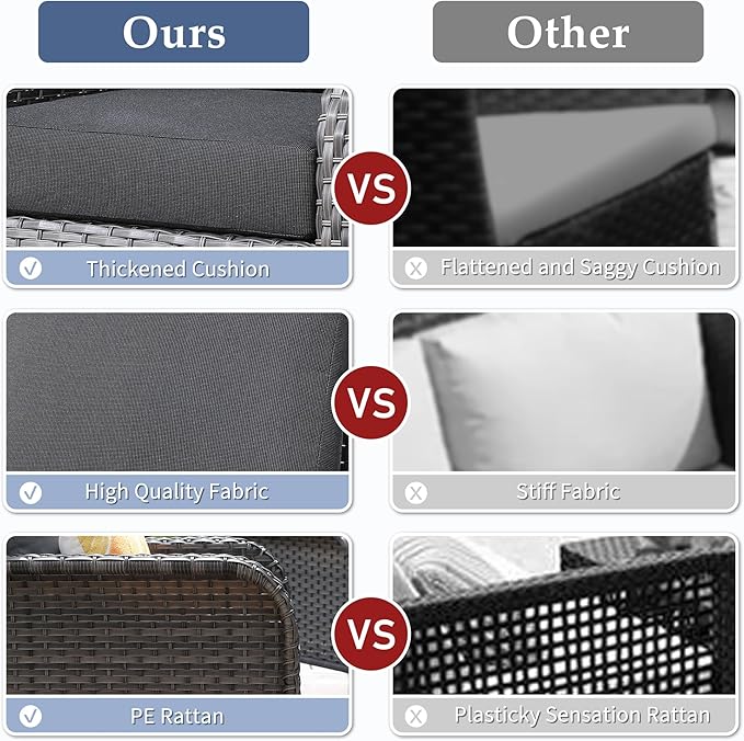 - Easy Assembly & Warranty: Our patio set is easy to assemble with all the necessary hardware and tools included. Plus, we offer a manufacturer warranty for 365 days from the date of purchase and friendly customer service. If you have any questions or concerns, don't hesitate to reach out to us!