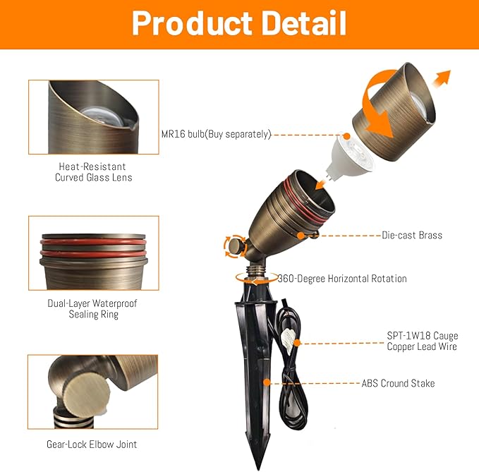 - 【ULTIMATE SAFETY ASSURANCE】--- Rest easy with our UL certified system, operating at a safe 12V through standard outdoor transformers. Each unit comes complete with a heavy-duty ground stake and 4ft premium copper wiring, ensuring reliable performance and total peace of mind. Your safety is our top priority!