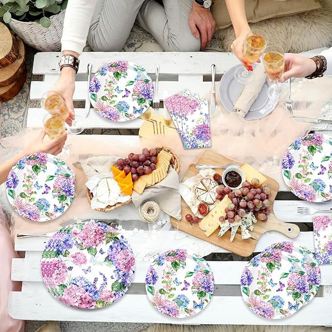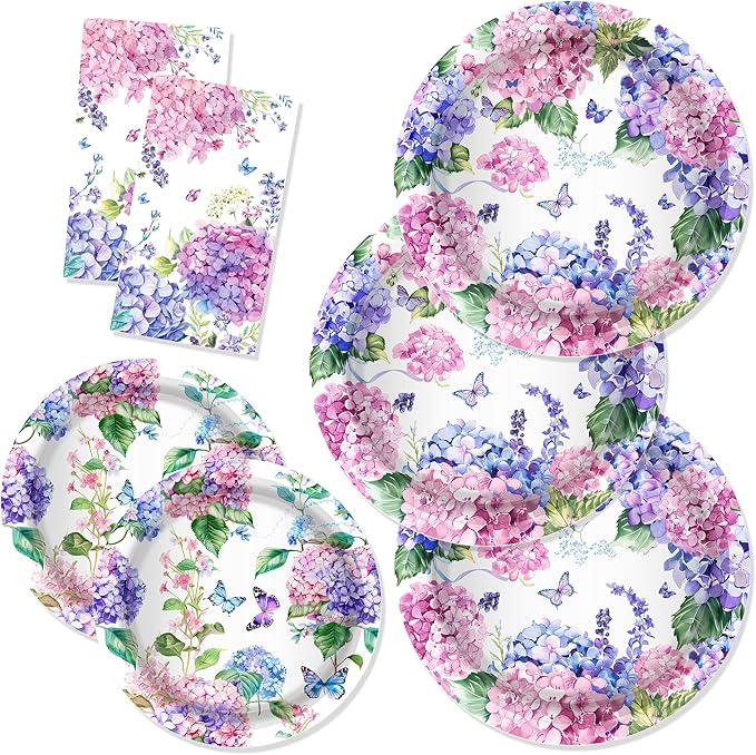 - 【Save Your Time】Hydrangea party disposable tableware set save you from the hassle of dishes-washing. Enjoy more time with your guests. This party pack contains all of your birthday party tableware needs and is completely disposable.