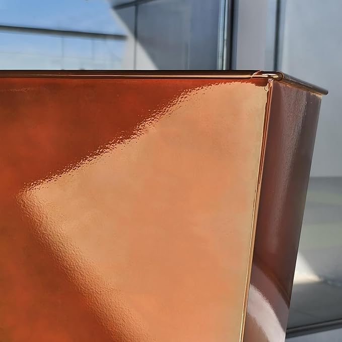 KOL 18''H. Bright Glazed Planter with Drainage Hole, Set of 2, Galvanized Steel Planter Pots for Indoor & Outdoor Use, Decorative Flower Plant Pots for Front Porch, Patio, Deck - Reddish Brown
