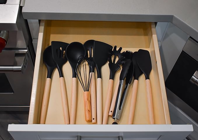 Kitchen Utensils Cookware Set, 12-piece BPA free Silicone with Wood Handle and Storage Container