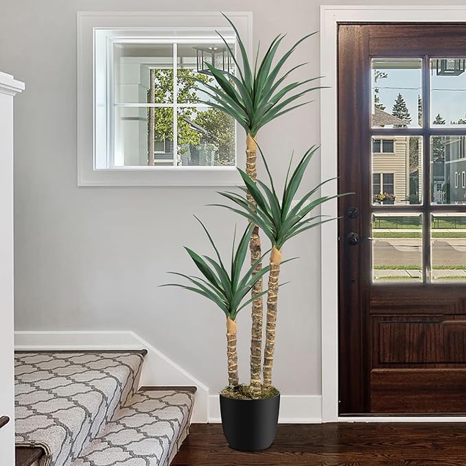 - 【Highly Realistic Agave Plant】Our realistic year-round greenery agave fake plants, 6 feet tall with 3 trunks, equipped with a sturdy bottom basin, our fake tree's superb craftsmanship to simulate the intricate texture of real palm leaves and bark, it's as if you've been transported to a rainforest, a bold decorative large agave artificial plants that will definitely catch the eye