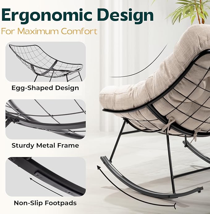 - QUICK & EASY ASSEMBLY. All of the instructions and tools required for modern rocking chair outdoor assembly are included; It will only take you a few minutes to complete our patio egg rocking chair