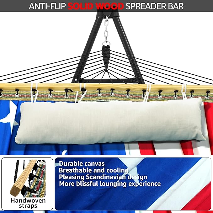 Tranquillo Unity Adjustable Hammock Stand, 800 lbs Capacity Steel Double Hammock Stand for 2 Persons, Premium Pre-Assembled Stand for Indoor Outdoor (American Flag)