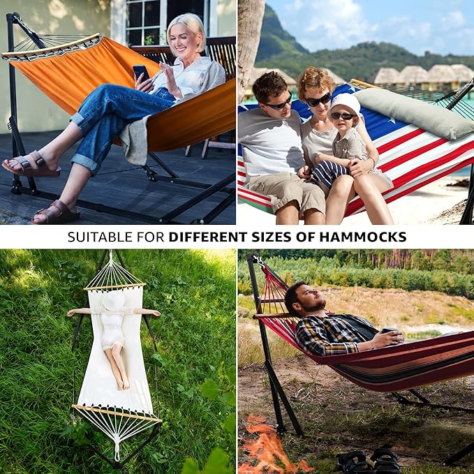 - SEAMLESS SETUP: Say goodbye to the hassle of finding the perfect hanging spot. Our Hammock Stand provides a sturdy foundation, allowing you to create your personal relaxation oasis anywhere – be it the backyard, patio, or even indoors. Enjoy the freedom to choose your ideal location without compromising on comfort