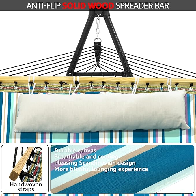 - PREMIUM QUALITY, DURABLE ELEGANCE: Built to withstand the test of time, our hammock is crafted from premium materials that resist fading, fraying, wear, with 800 lbs capacity. The combination of robust netting and sturdy hardwood ensures a long-lasting, stylish addition to your space