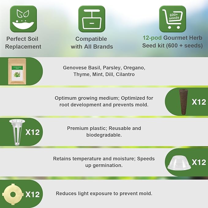 - Universal Compatibility - Our seed pod kits are perfectly compatible with AeroGarden, iDoo, Ahopegarden, MUFGA, and most other hydroponics growing systems. You can easily incorporate our kits into your existing setup or start fresh with confidence. Integrate convenience and reliability with economic viability.