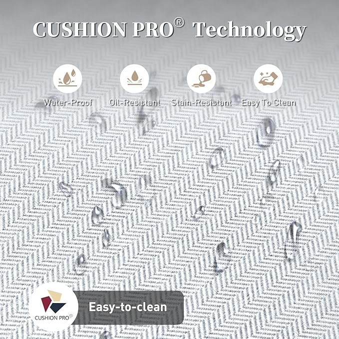 - ALL WEATHER USE: The fabric of this furniture set is applied with CUSHION PRO TECHNOLOGY. It's waterproof, oil resistant and stain resistant, makes the fabric so easy to clean, you can easily wiped off the water, wine, oil and bird droppings with a rag. 47'' coffee table's top is made of toughened glass, stronger and has better security than normal