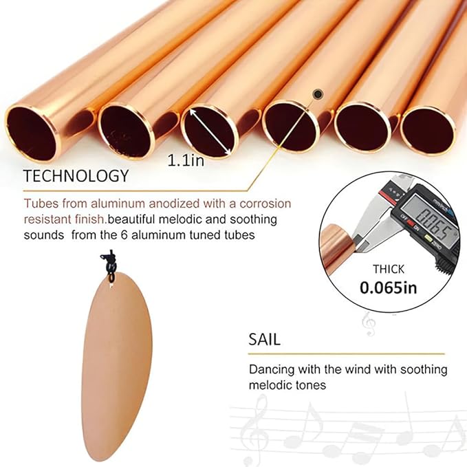 - Premium Alumimum Wind Chimes: Made of 6 high quality aluminum steel tubes, the golden tube body is very nice to look at, the wind chimes are sturdy and durable, waterproof and rainproof, and can be used both indoors and outdoors.