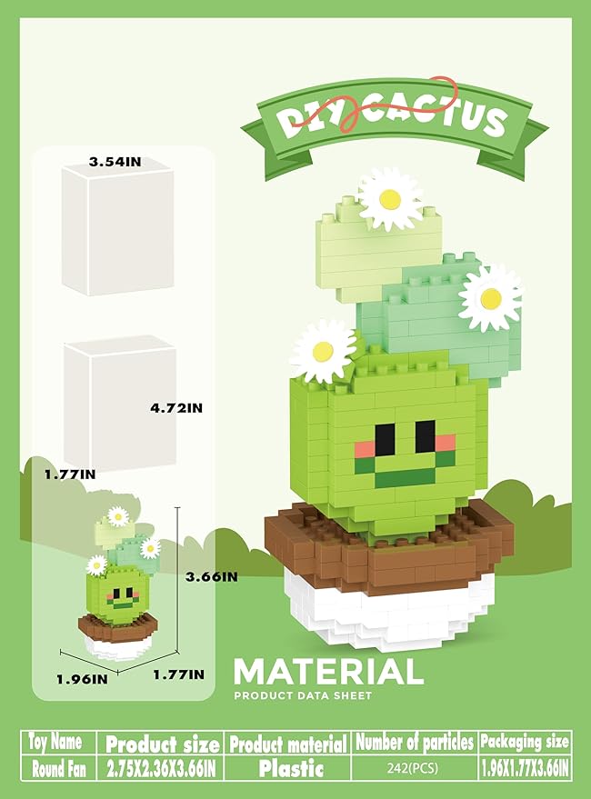 - Nature Meets Playfulness: Discover the playful side of nature with our cactus building blocks. Combining the rugged beauty of desert flora with a whimsical design, this set offers a fun and creative way to celebrate the charm of cacti.