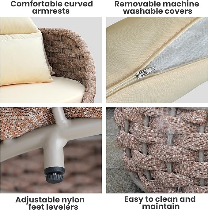 6 PCS Outdoor Accent Chair: Aluminum Woven Rope Patio Chair Modern - Cushioned Single Chair Assembled - All Weather Deck Furniture for 400lbs Porch Lanai Yard Balcony Garden Hotel, Terracotta