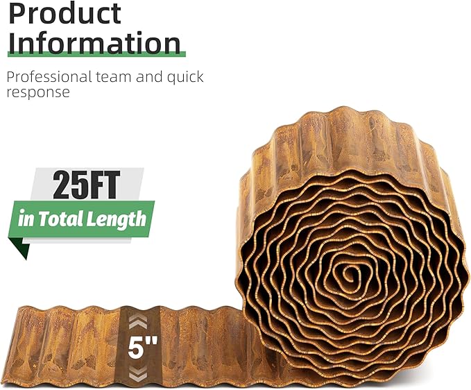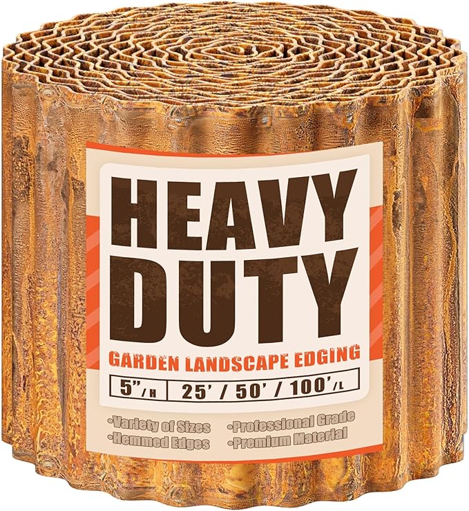 AHEONLAR Corrugated Metal Garden Edging, 5''×25Ft Steel Landscape Edging Border, Flower Bed Edging Borders, Metal Lawn Edging for Landscaping, Garden, Pathway, Lawn, Flower Bed, Garden Fence (Rusty)