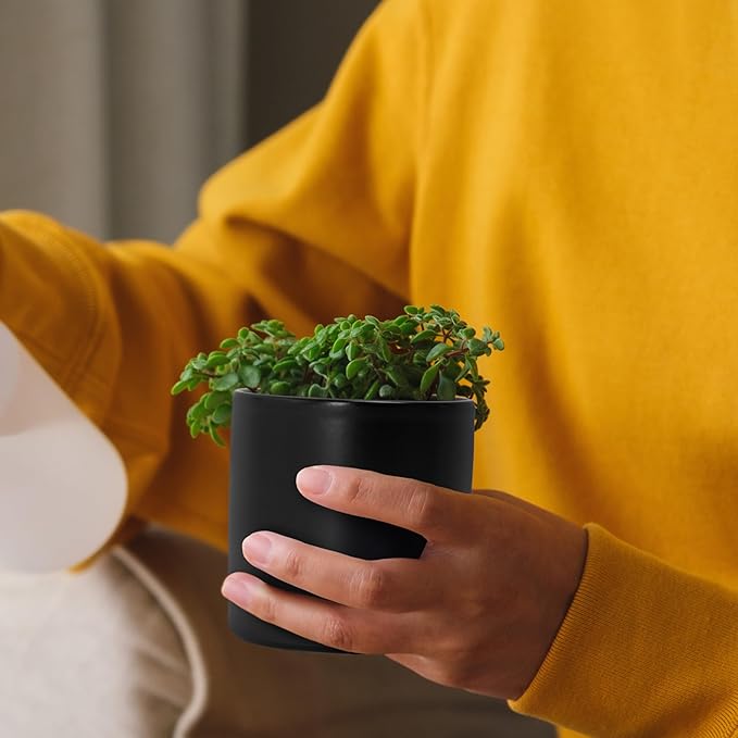 D'vine Dev 3.5 Inch Ceramic Planter Pot with Drainage Hole and Saucer, Indoor Cylinder Round Planter Pot, Black, 94-O-A-2