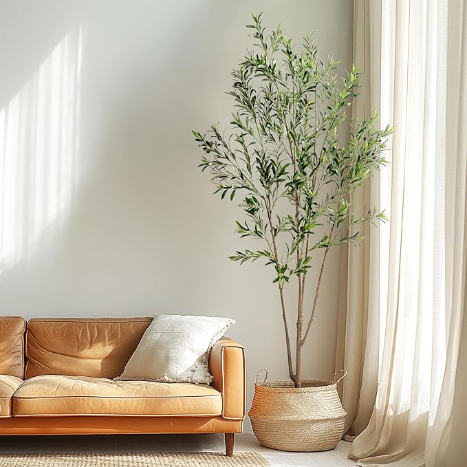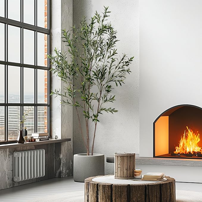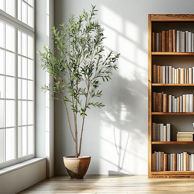 8FT Artificial Olive Tree Tall Faux Silk Plant Tall Faux Olive Tree with Natural Wood Trunk & Lifelike Fruits Fake Potted Tree or Home Office Decor