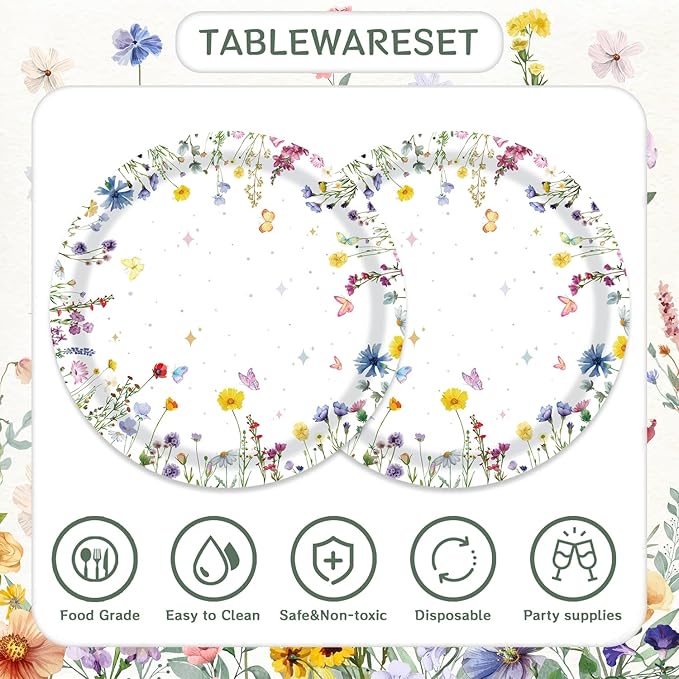 - 【Perfect for Any Occasion】 Versatile and delightful, this set suits garden parties, baby showers, birthdays, bridal showers, or spring-themed events. Whether indoors or outdoors, the wildflower motif brings cheerful vibes to your decor.