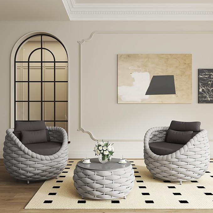 - Sturdy & Durable - Quick drying woven rope outdoor furniture with high quality aluminum alloy,no rust,no deformation,hand woven textilene rope are strong enough to withstand all weather variations.Outdoor patio furniture set cushions balance well with sturdy frame.