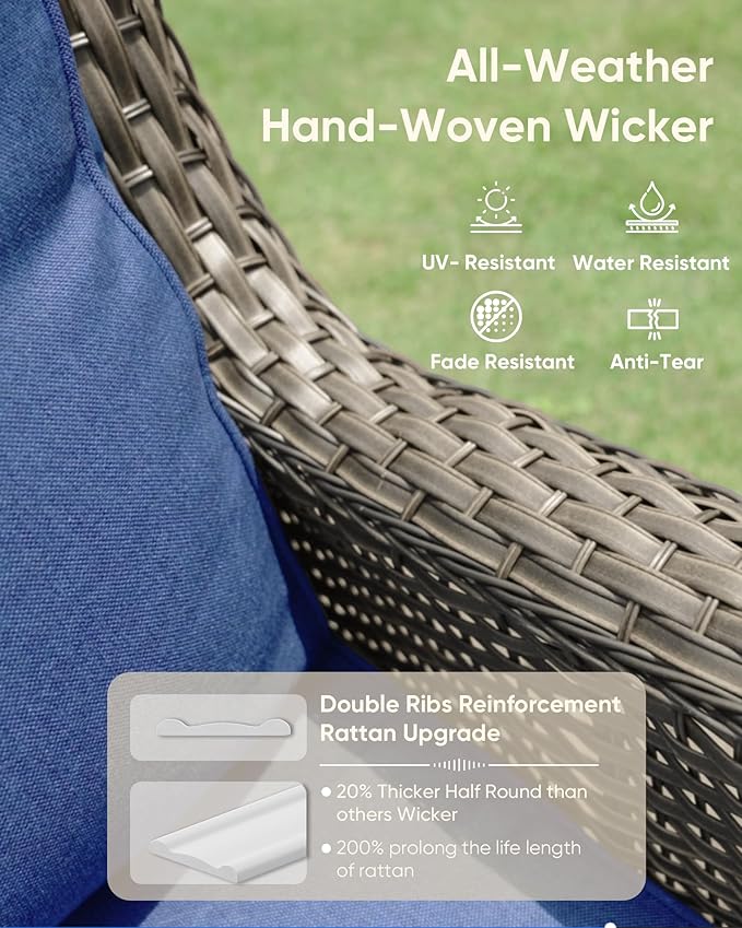 - 5-Inch Thick Cushions for Unmatched Comfort: Our patio swivel chair features Olefin cushions that are 5 inches thick, crafted from high-quality and high-resilience sponge. This design ensures exceptional comfort and support, allowing you to relax for hours without fatigue. The cushions maintain their shape over time, providing lasting enjoyment. In addition, the removable covers make for easy cleaning, keeping your chair looking fresh and new for years to come.