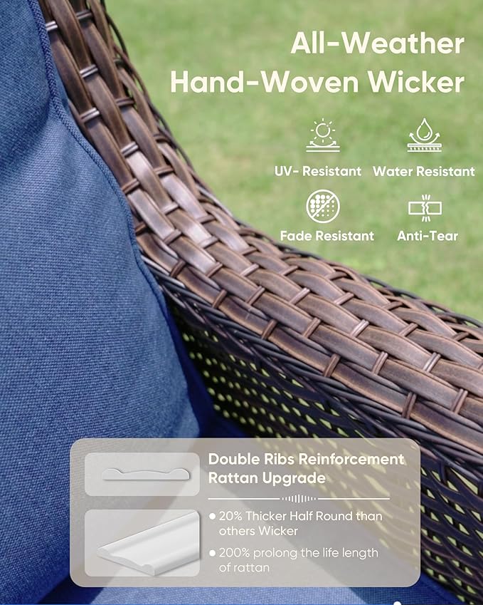- 5-Inch Thick Cushions for Unmatched Comfort: Our patio swivel chair features Olefin cushions that are 5 inches thick, crafted from high-quality and high-resilience sponge. This design ensures exceptional comfort and support, allowing you to relax for hours without fatigue. The cushions maintain their shape over time, providing lasting enjoyment. In addition, the removable covers make for easy cleaning, keeping your chair looking fresh and new for years to come.