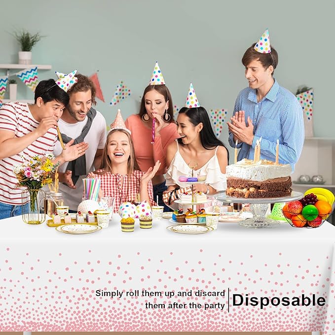 - 【Multiple Uses】White and pink dot tablecloths can create a party atmosphere and are perfect for celebrations like birthday party. Suitable for indoor and outdoor use. Ideal for parties, banquets, birthdays, baby shower, picnics, weddings, graduation, Valentine's Day decorations, Thanksgiving dinners, Christmas celebrations, etc. Not only suitable for parties, but suitable for decorating! Plus, white and pink dot table cloths for parties can also be used as decorative background banners or graffiti table covers to keep your table clean
