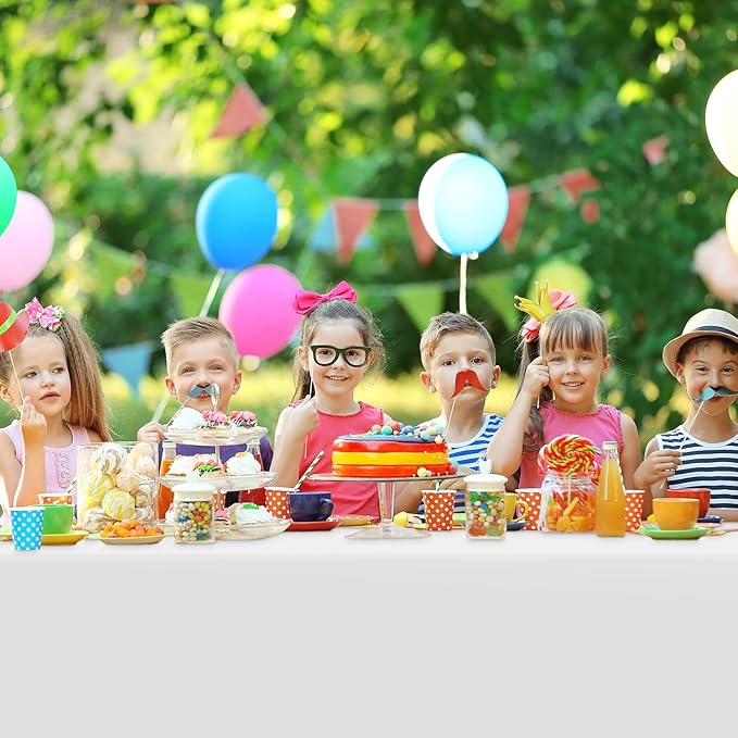 - 【Multiple Uses】White tablecloths can create a party atmosphere and are perfect for celebrations like Halloween. Suitable for indoor and outdoor use. Ideal for parties, banquets, birthdays, picnics, weddings, Valentine's Day decorations, Thanksgiving dinners, Christmas celebrations, etc. Not only suitable for parties, but suitable for decorating! Plus, white tablecloths for parties can also be used as decorative background banners or graffiti table covers to keep your table clean