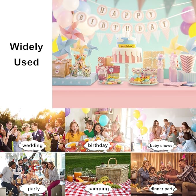 - 【Multiple Uses】Blush pink plastic tablecloths can create a party atmosphere and are perfect for celebrations like birthday party. Suitable for indoor and outdoor use. Ideal for parties, banquets, birthdays, picnics, weddings, Valentine's Day decorations, Thanksgiving dinners, Christmas celebrations, Halloween, etc.