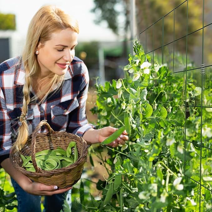 - Cucumber Trellis Material: Constructed with 4mm plastic-coated steel core, the garden trellis ensures reliable strength and long-lasting performance. The powder-coated steel frame is strong enough to support heavy loads and has big 6"*7.5" grid openings for easy harvesting