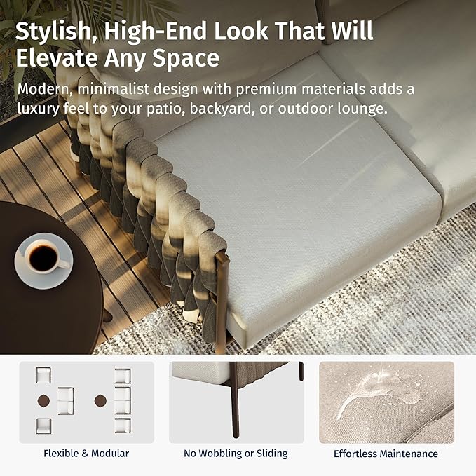 - UNMATCHED OUTDOOR DURABILITY: Crafted with a heavy-duty steel frame and durable Olefin rope, this 4-piece set resists rust, fading, and weather damage. The waterproof, breathable cushion covers ensure all-season comfort, making it perfect for outdoor use year after year