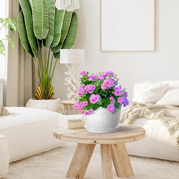 - 【Multiple Size】This plastic planter pots set includes different size pots(12", 10", and 9" diameter pots), you can grow a variety of plants or flowers at one time like succulents, cactus, herbs, ZZ plant, aloe, peace lilies, as you like, creating a beautiful dream garden for you