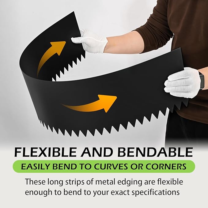 - Easy installation design: Steel landscape edging keep your micro-bark from washing off into the street during rain. Easy to pound into the ground. Easy to bend, hammer and adjust; NOTE: The top is polished, will not scratch the hand, but please put on gloves to avoid scratch. Support remolding.
