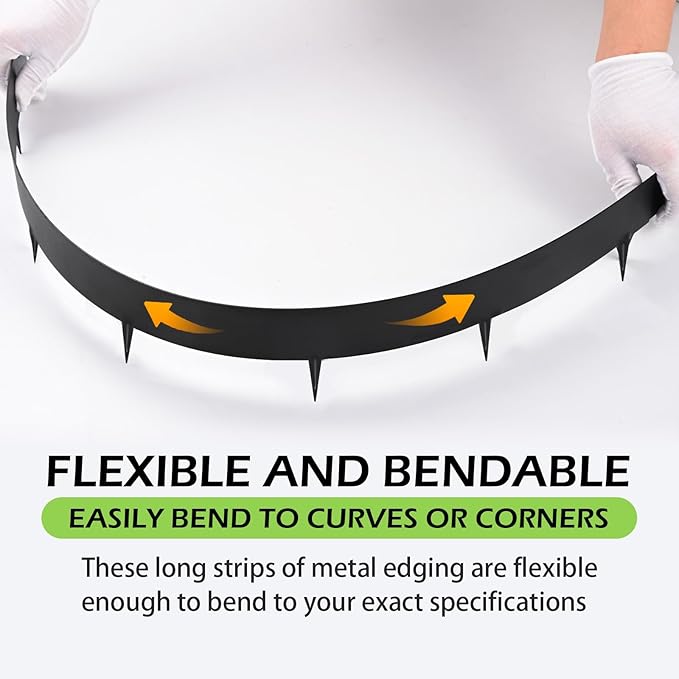 - Easy installation design: Steel landscape edging keep your micro-bark from washing off into the street during rain. Easy to pound into the ground. Easy to bend, hammer and adjust; NOTE: The top is polished, will not scratch the hand, but please put on gloves to avoid scratch. Support remolding.