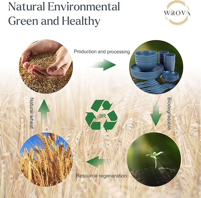 - ā¦ćš£š®š°šøš®š“š² šš»šš¶š±š²ć - Wrova 28pack wheat straw dinnerware sets contains 4pcs 10inches wheat straw plates with deep edge,4pcs 26oz wheat straw bowls,4pcs 12oz wheat straw cups,4pcs sauce plates and 12pcs cutlery as well. All of them are bpa and lead free,lightweight and easy to clean. Ideal for new apartment and dormitory.